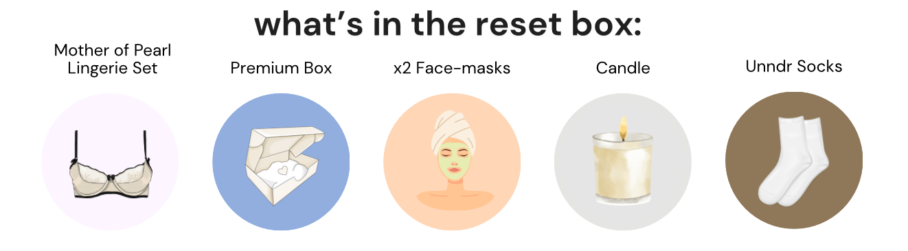 The best part? Worth £80 but yours for £45. The Reset Box is indulgence made easy, a balance of confidence, comfort and calm.